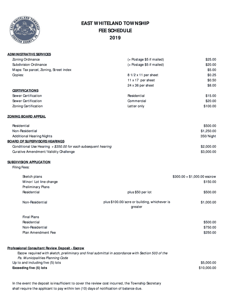 Property owners and developers are typically required to file for building inspection in East Whiteland Township.