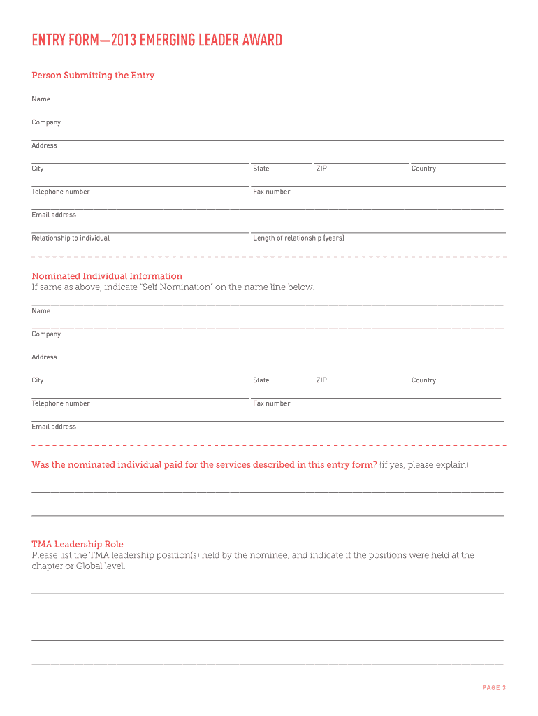 Edit your 2013 emerging leader award form online