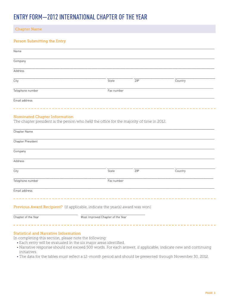 Get the free E N T RY PAC K E T 2012 INTERNATIONAL CHAPTER OF THE YEAR AWARD APPLICATION ENTRIES ...