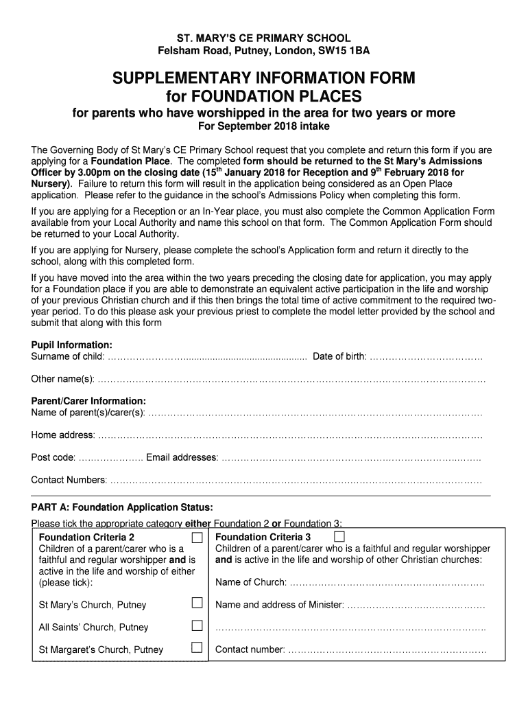 Felisha Road, Putnam, London, SW15 1BASUPPLEMENTARY INFORMATION FORM