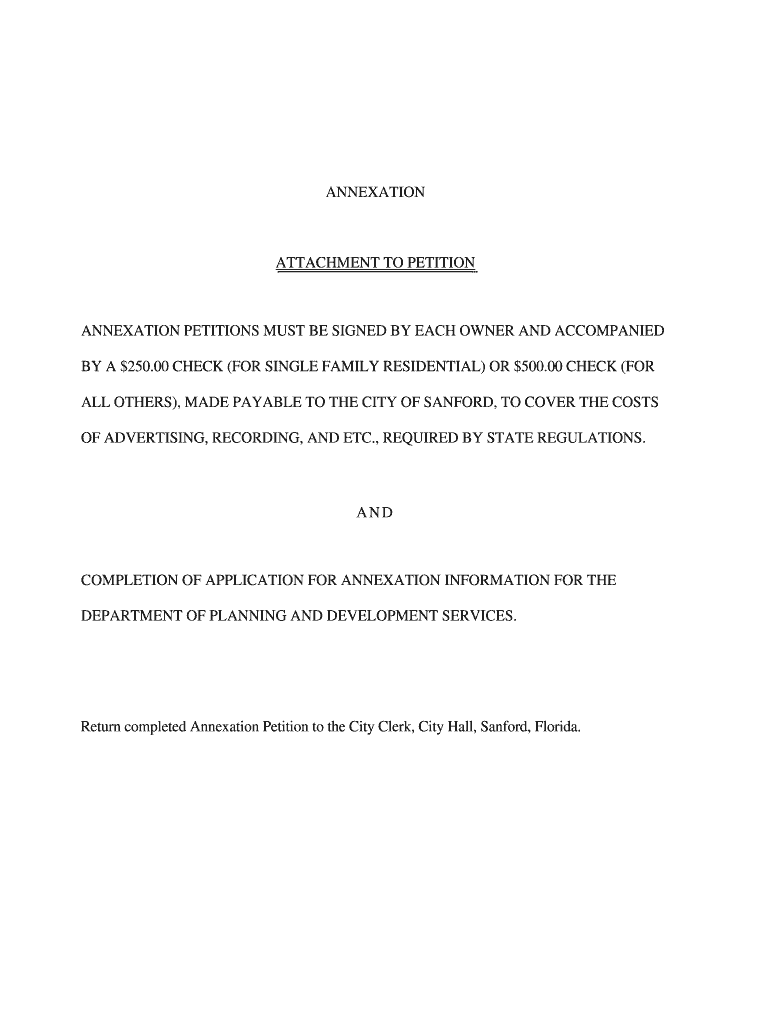 ANNEXATIONATTACHMENT TO PETITIONANNEXATION PETITIONS MUST BE SIGNED BY EACH OWNER AND ACCOMPANIED