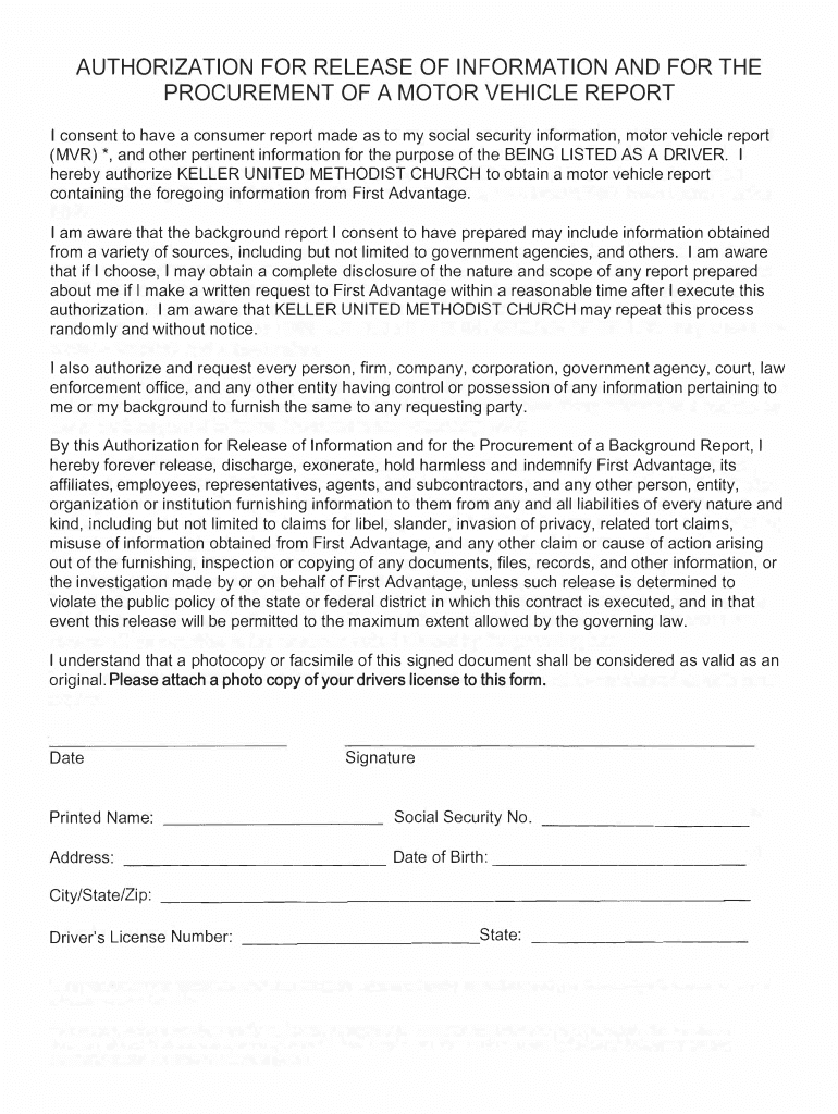 I consent to have a consumer report made as to my social security information, motor vehicle report