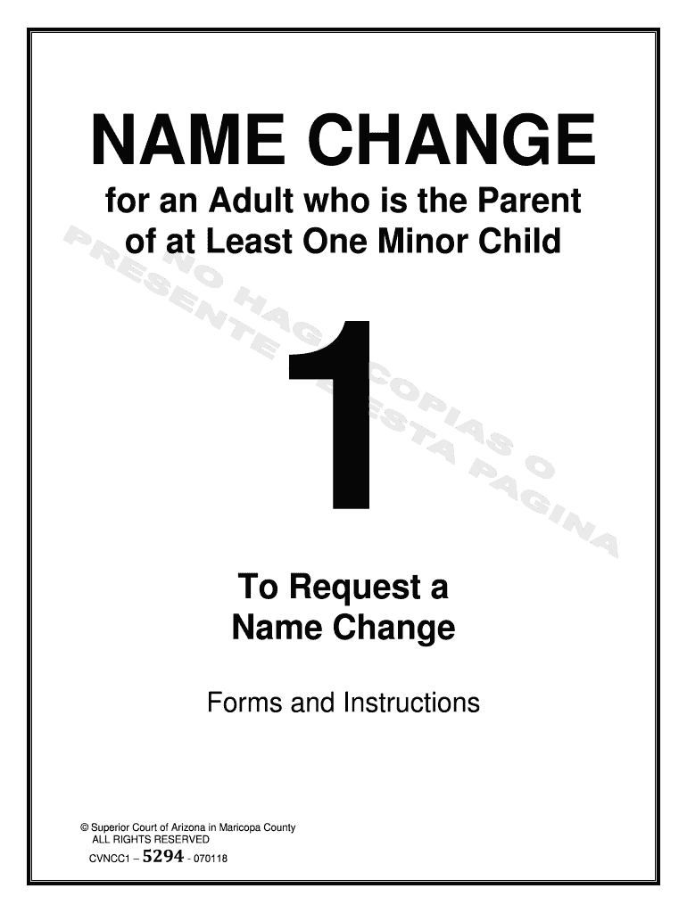 NAME CHANGE for an Adult who is the Parent of at Least One Minor Child1 To Request a Name Change Forms and Instructions Superior Court of Arizona in Maricopa County ALL RIGHTS RESERVED CVNCC1 5294