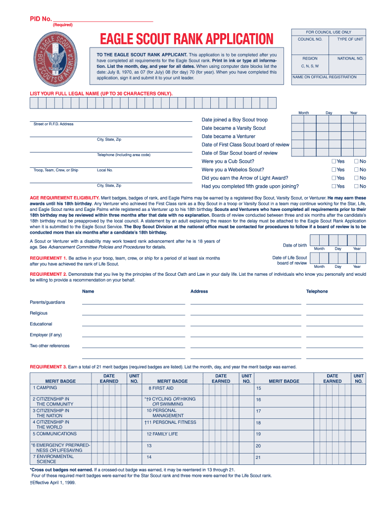 Forms. Troop Leadership Application. Leadership Term of Office Job Forms: ... Troop Guide New Scout Patrol ... Eagle Scout Rank Application ... National Tour Permit (PDF version) ... COPYRIGHT 2007