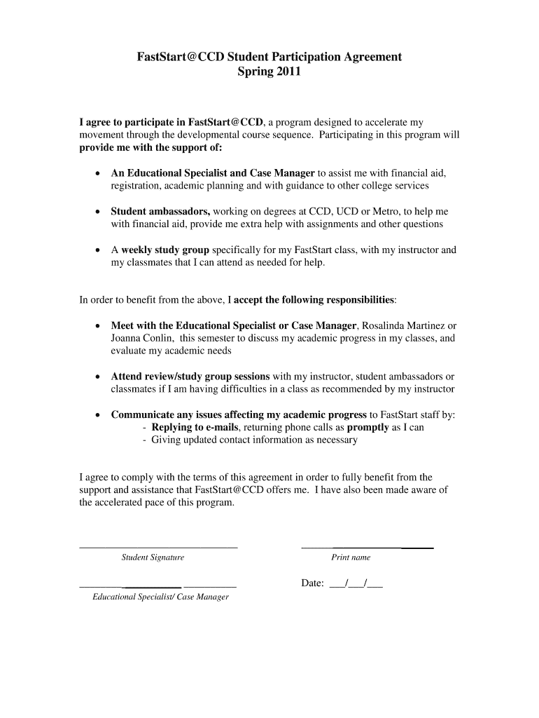 Get the free FastStartCCD Student Participation Agreement