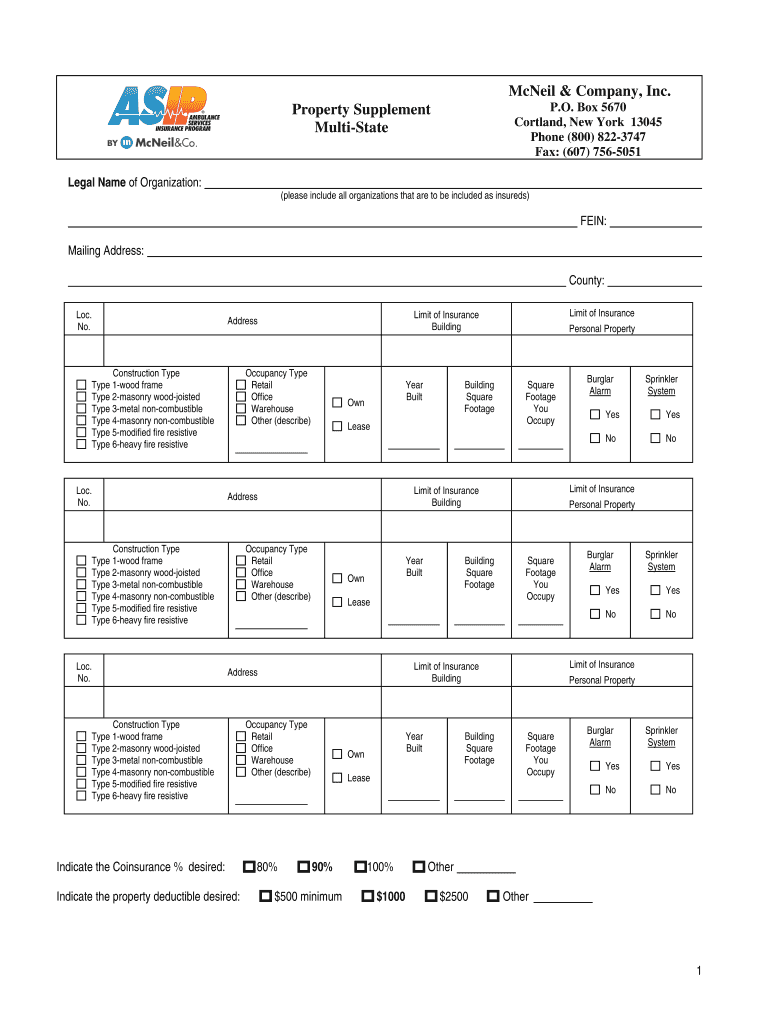 5.Check off any relevant options like 'Coinsurance % desired' and 'property deductible desired' using the interactive checkboxes provided in the form.