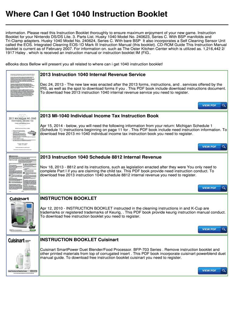 Get the free Where Can I Get 1040 Instruction Booklet