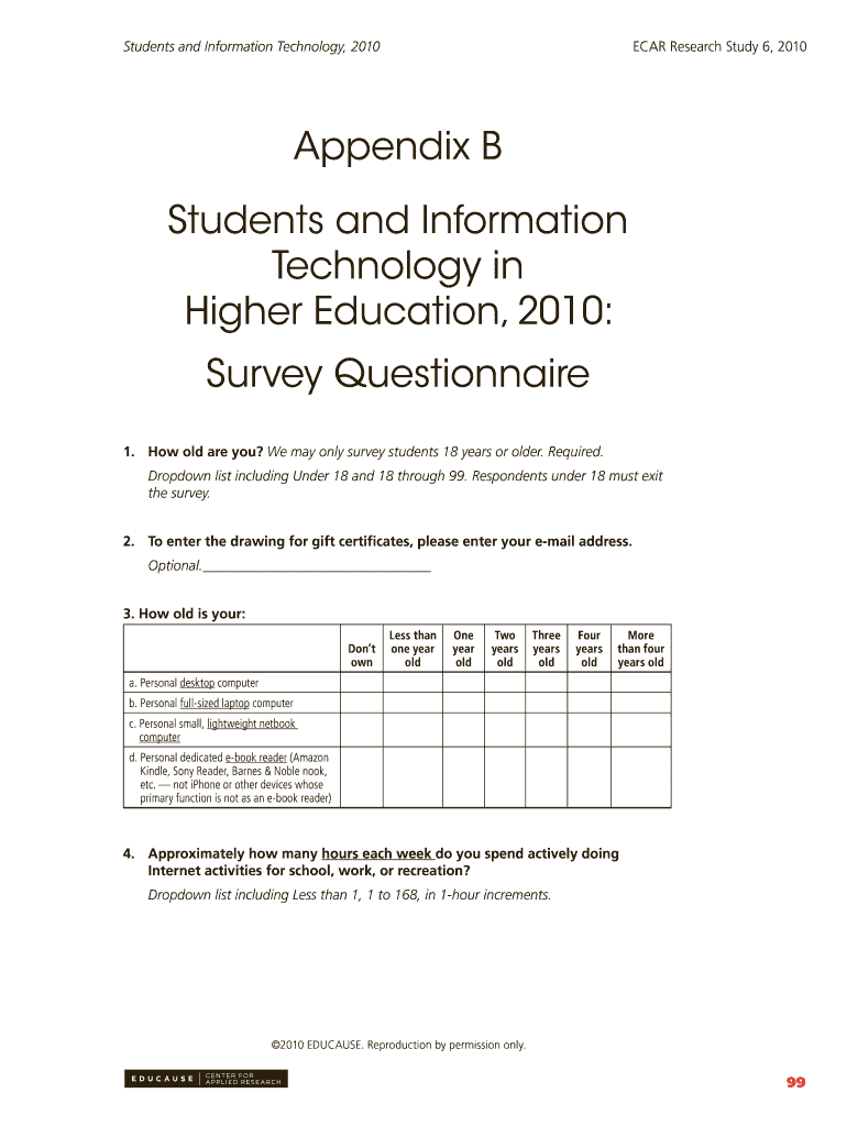 Students and Information Technology, 2010 CAR Research Study 6, 2010 Appendix B Students and Information Technology in Higher Education, 2010: Survey Questionnaire 1. How old are you? We may only