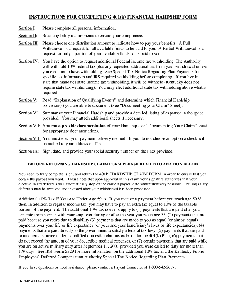 Get the free INSTRUCTIONS FOR COMPLETING 401(k) FINANCIAL HARDSHIP FORM Section I: Please complet...