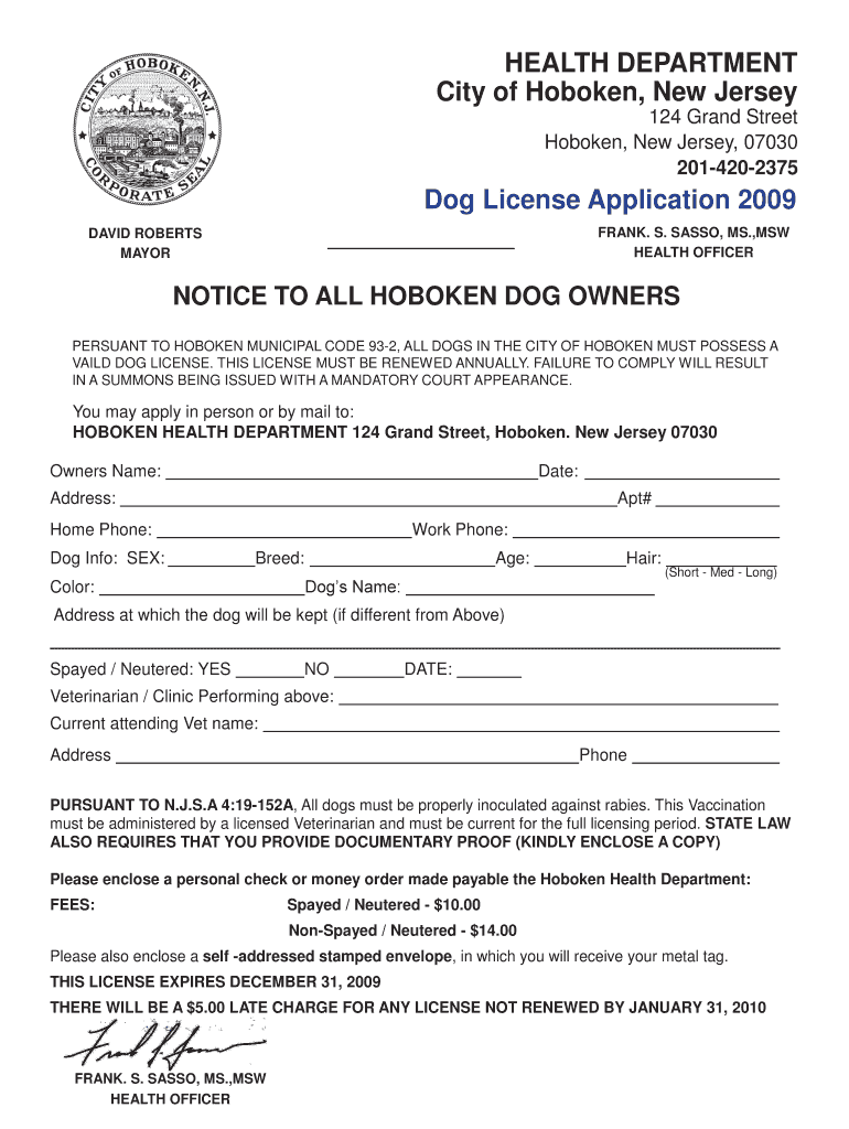 Completing the Hoboken Dog License Application requires attention to specific fields: