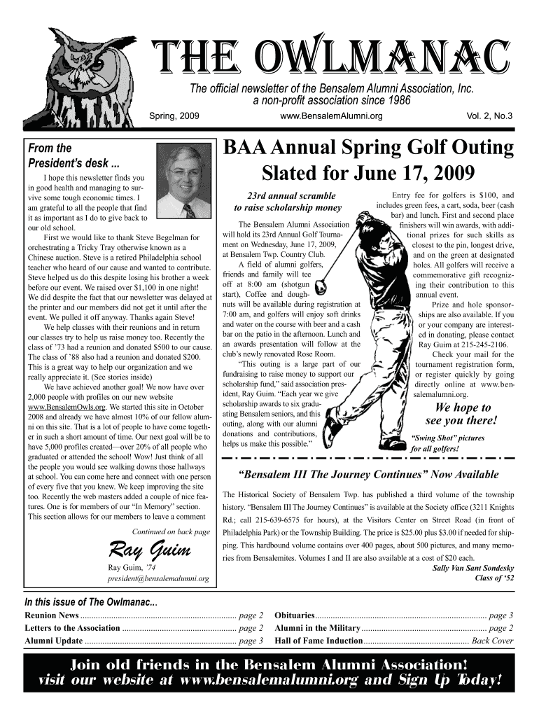 The Almanac The official newsletter of the Bensalem Alumni Association, Inc. a non-profit association since 1986 Spring, 2009 From the President s desk ... I hope this newsletter finds you in good