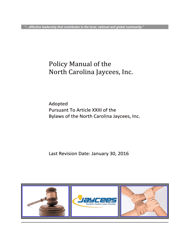 Effective leadership that contributes to the local, national and global community. Policy Manual of the North Carolina Jaycees, Inc. Adopted Pursuant To Article XXIII of the Bylaws of the North Carolina