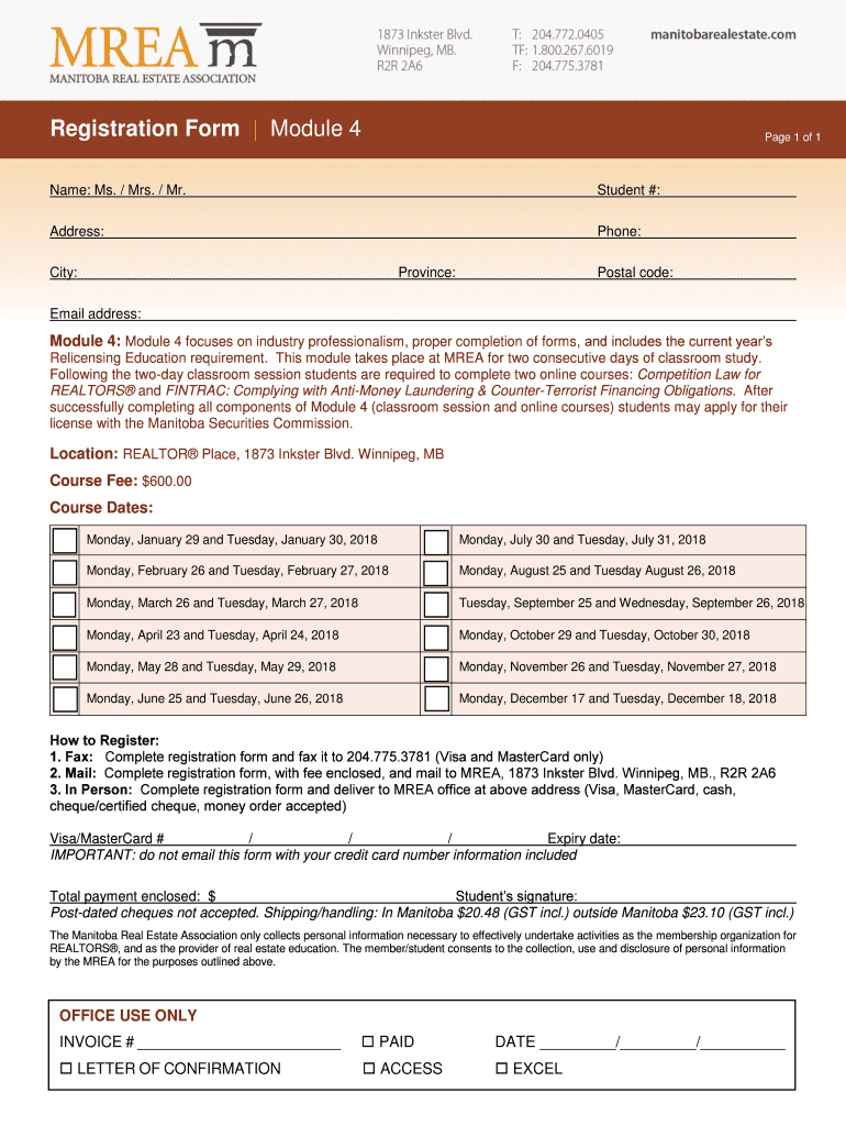 Get the free Registration Form Module 4 - Manitoba Real Estate Association