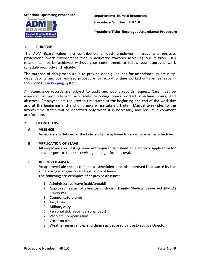 Procedure Title: Employee Attendance Procedure1. Purpose ADM Board values the contribution of each employee in creating