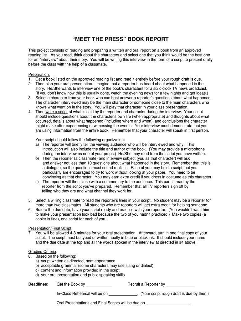 Get the free MEET THE PRESS BOOK REPORT - Beacon Learning Center