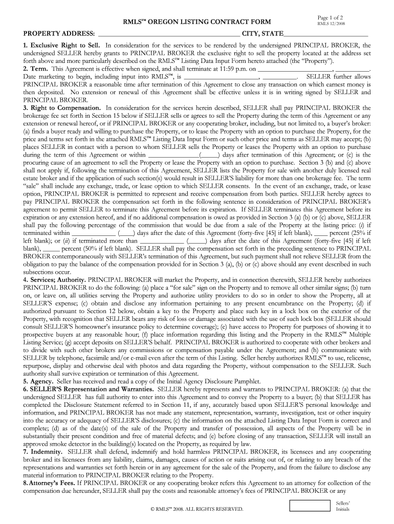 Get the free RMLS Oregon Listing Contract Form
