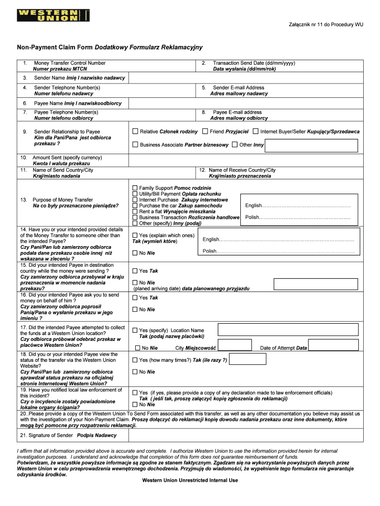 Get the free Non-Payment Claim Form Dodatkowy Formularz Reklamacyjny
