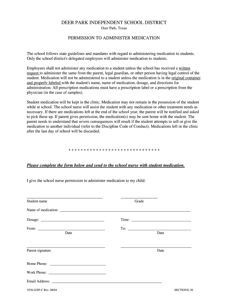 The Permission to Administer Medication form is essential for parents in Texas, specifically within the Deer Park Independent School District. This form grants school nurses the authority to administer medication to students during school hours. It is crafted to ensure compliance with Texas state guidelines for medication administration in educational settings, promoting a safe environment for all children.
