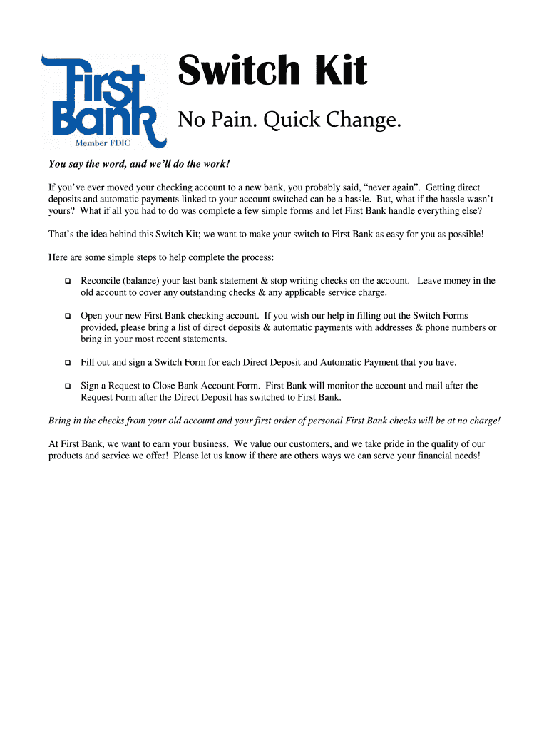 Get the free Switch Kit - First Bank
