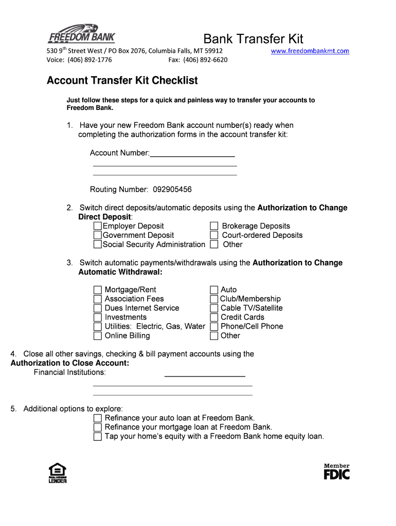 Utilizing the Bank Transfer Kit provides numerous advantages for account holders. One of the primary benefits is the convenience it offers in changing direct deposits and withdrawals with minimal hassle. By using this kit, individuals can ensure their transition to Freedom Bank is not only efficient but also enhances their financial stability without disruption. Furthermore, incorporating specific forms, such as account transfer forms, can simplify the overall process.