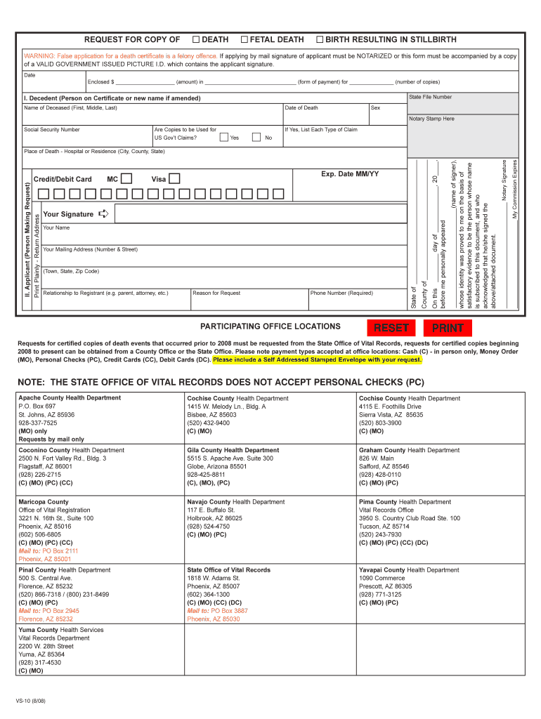 Get the free Arizona Death Certificate Request Form