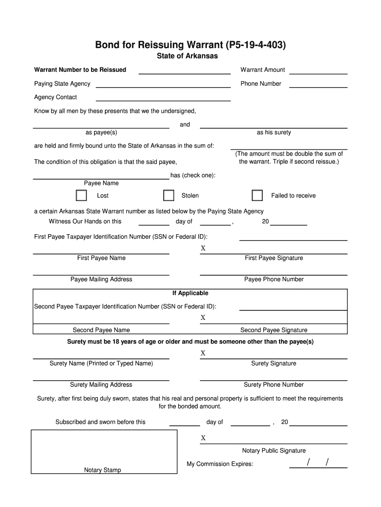 Get the free Bond for Reissuing Warrant