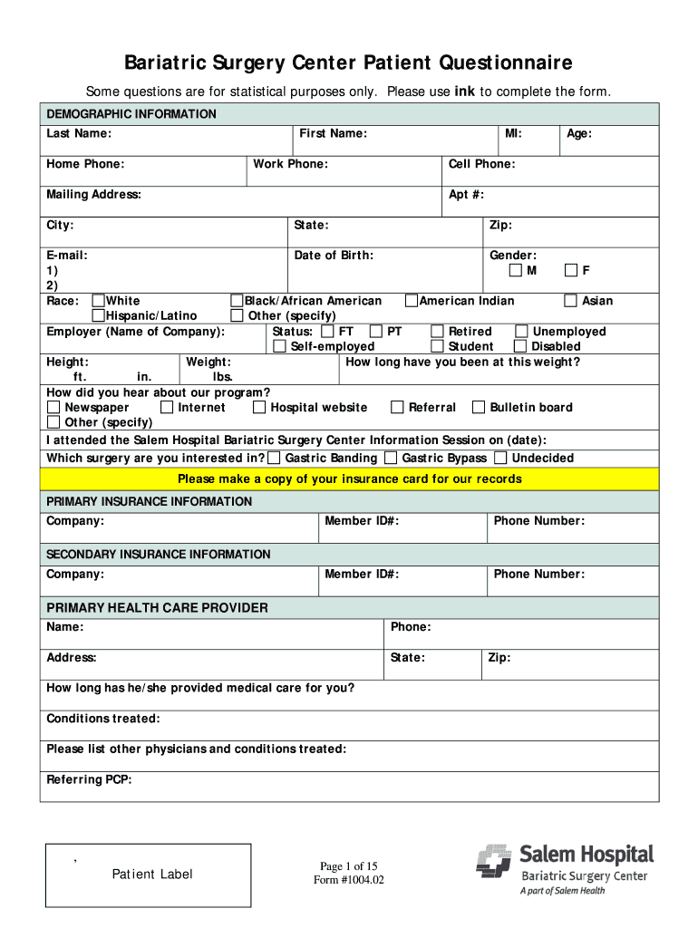 How to Fill Out the Bariatric Surgery Center Patient Questionnaire Online