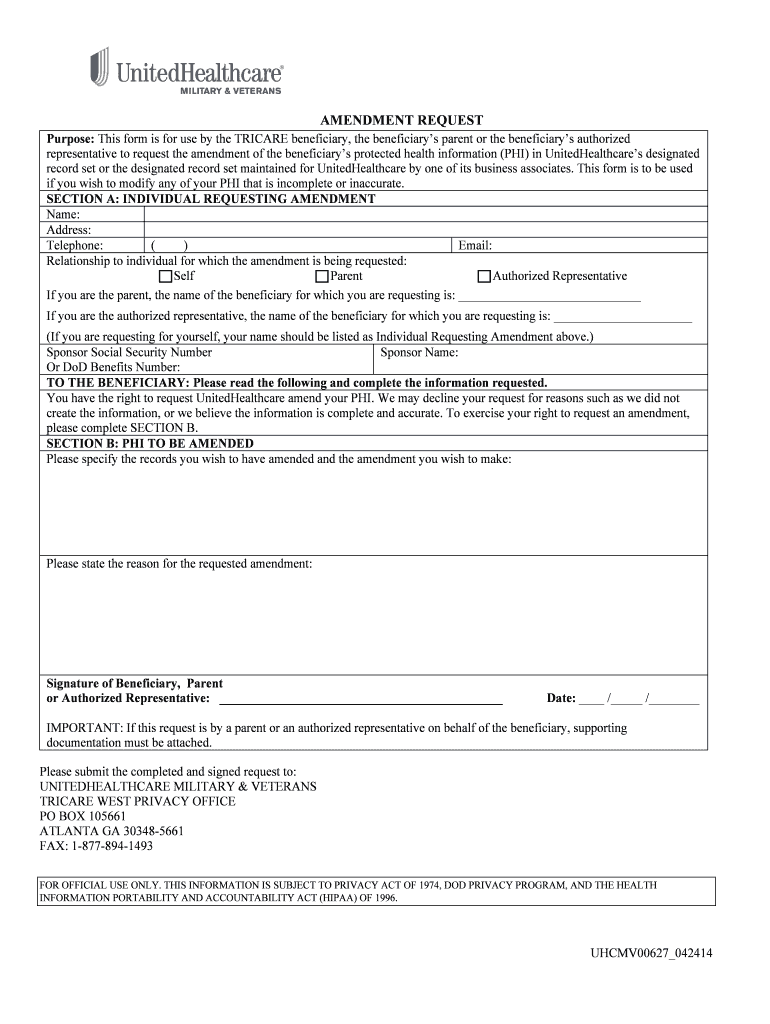 The form can be used by TRICARE beneficiaries, their parents, or authorized representatives interested in amending protected health information.