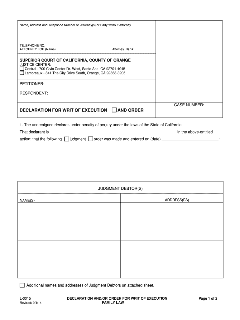 Get the free Declaration for Writ of Execution