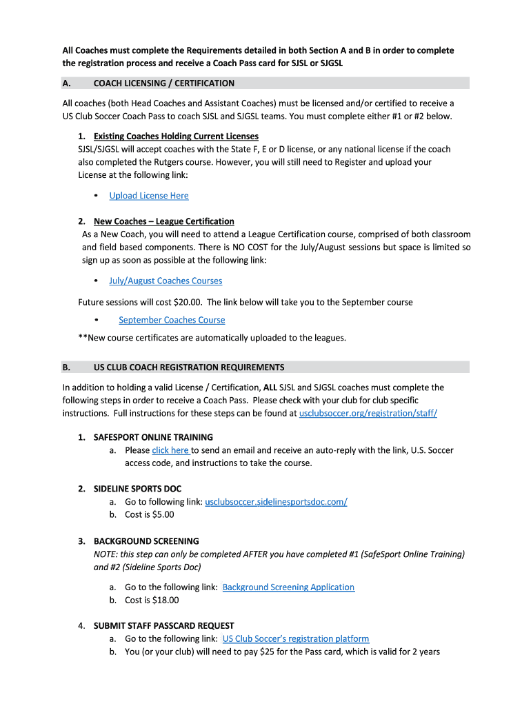 Get the free All Coaches must complete the Requirements detailed in both ...