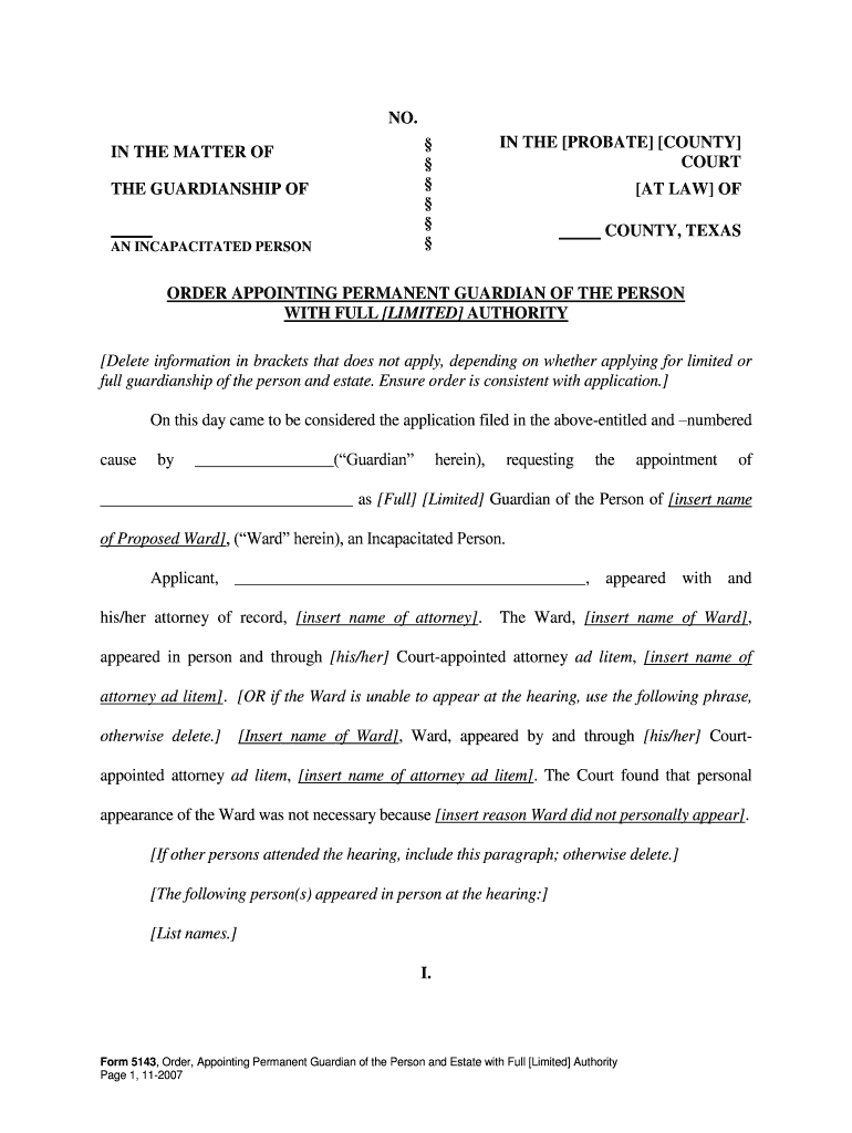 Final Steps for Using the Texas Guardianship Order Form 5143
