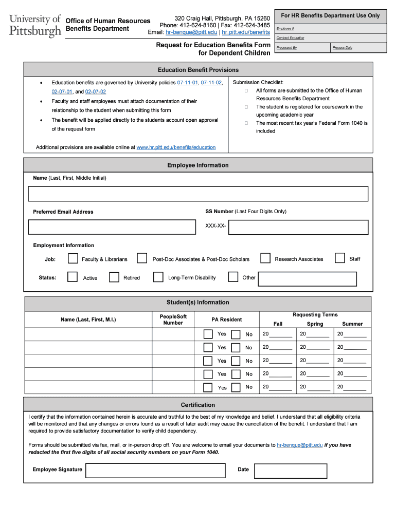 Get the free Office of Human Resources Benefits Department - Pitt HR