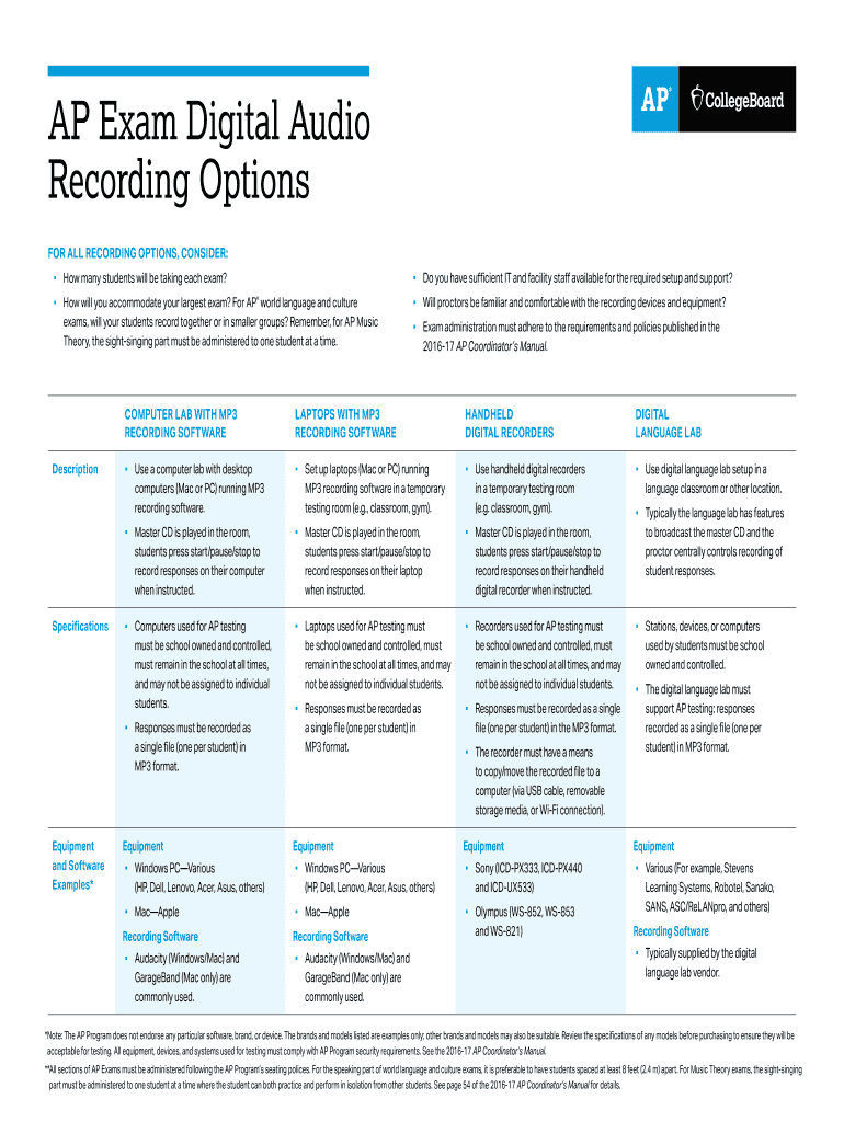 Get the free AP Exam Digital Audio Recording Options - AP Central - The ...