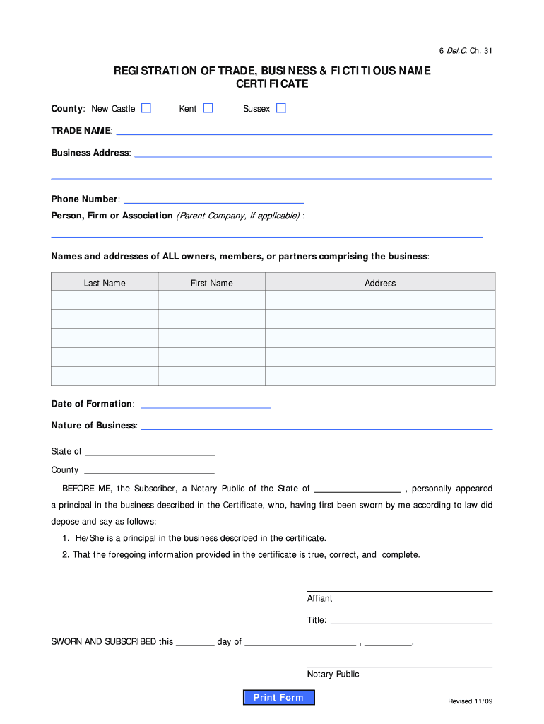 Get the free Delaware Trade Business Fictitious Name Registration