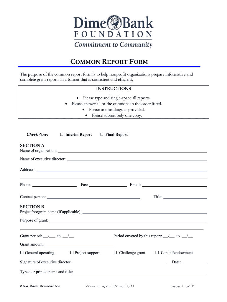 COMMON REPORT From The purpose of the common report form is to help nonprofit organizations prepare informative and complete grant reports in a format that is consistent and efficient. INSTRUCTIONS