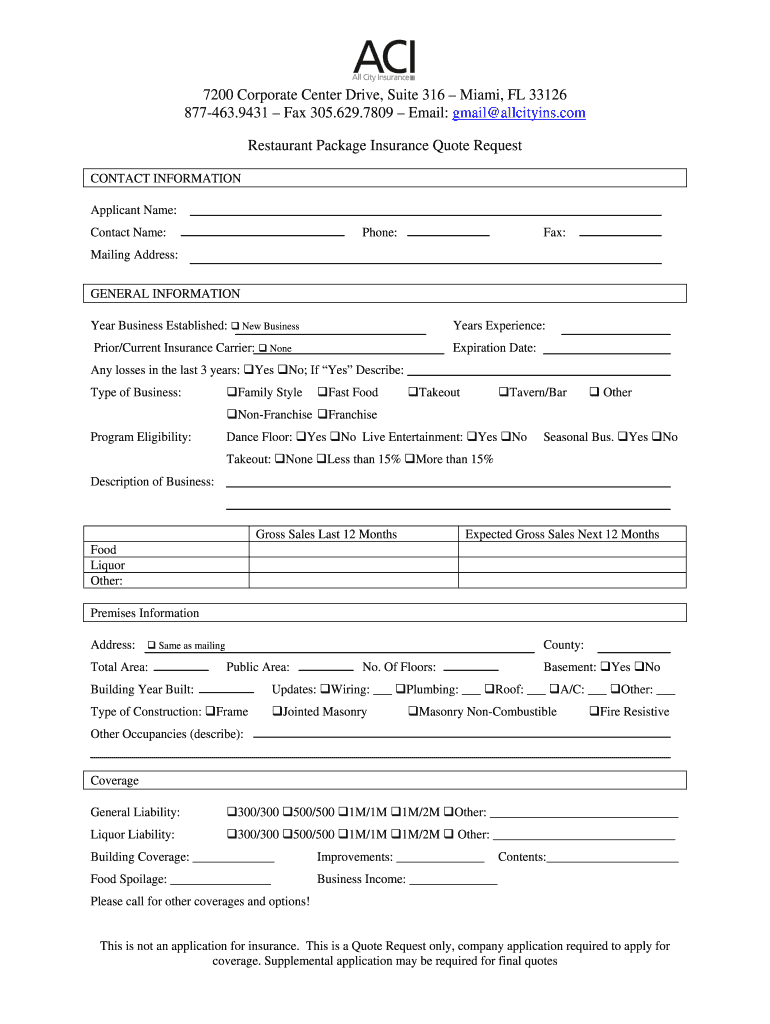 How to fill out the Restaurant Insurance Quote