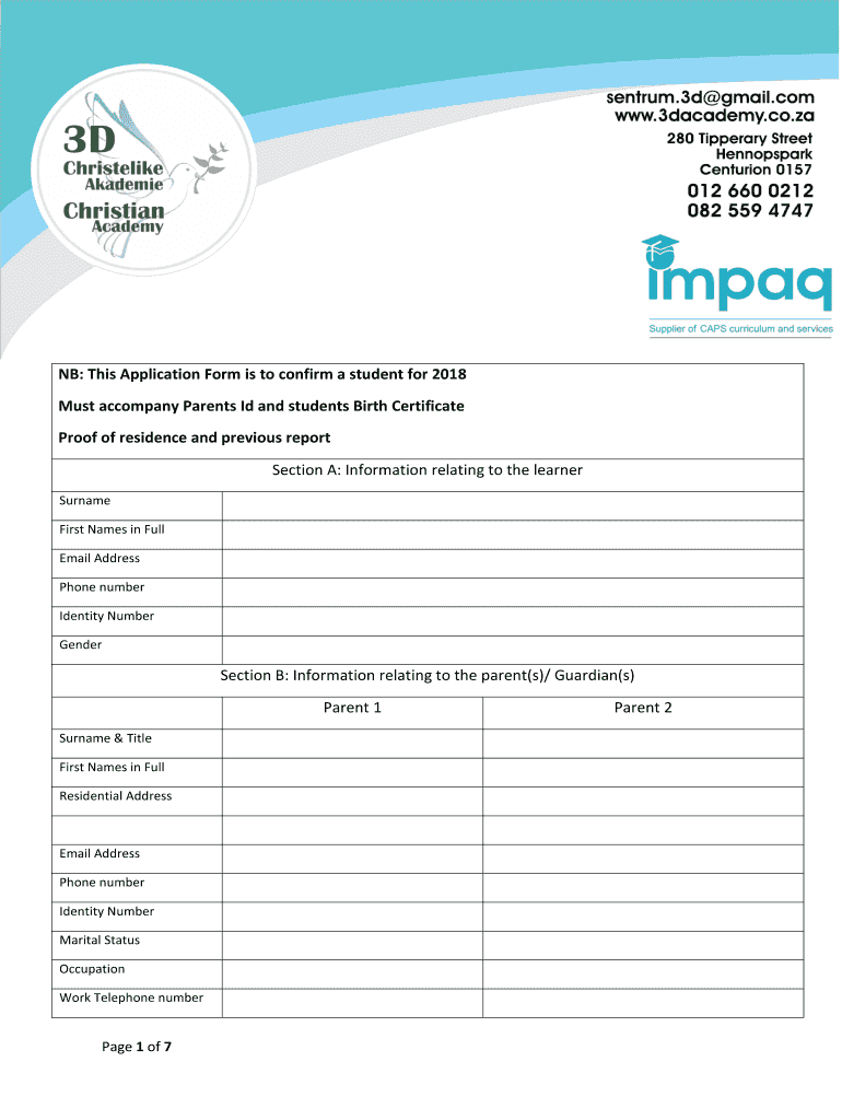 Get the free NB: This Application Form is to confirm a student for 2018 Must ... - 3dacademy co