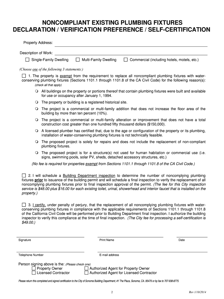 Get the free Noncompliant Existing Plumbing Fixtures Compliance Form - sonomacity