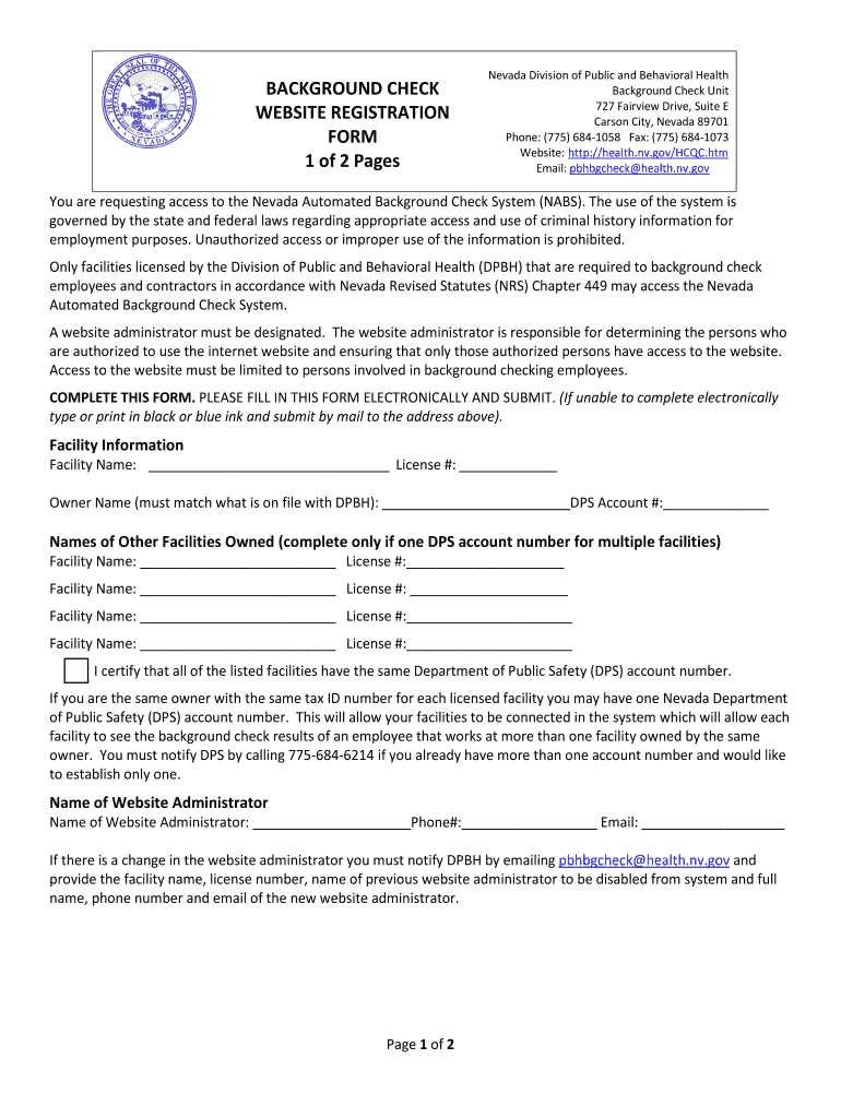 Get the free BACKGROUND CHECK WEBSITE REGISTRATION FORM 1 of 2 ...