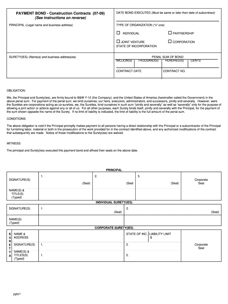 6.Make sure to provide the penal sum of the bond and enter the contract date and number accurately.