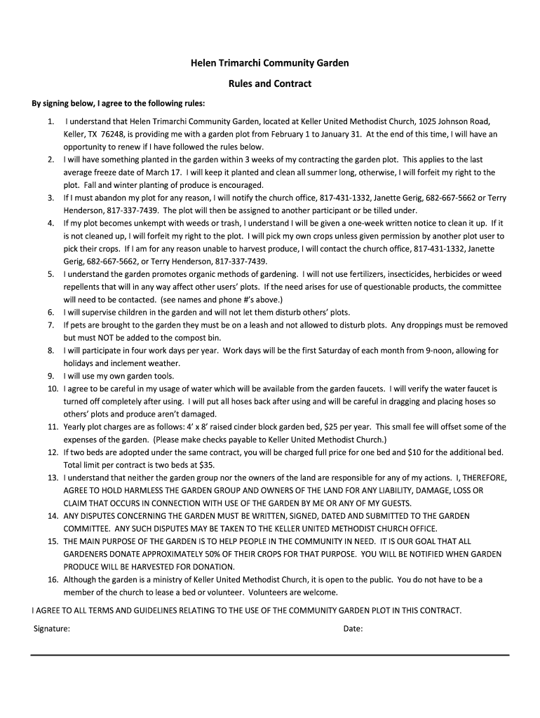 Get the free Helen Trimarchi Community Garden Rules and Contract