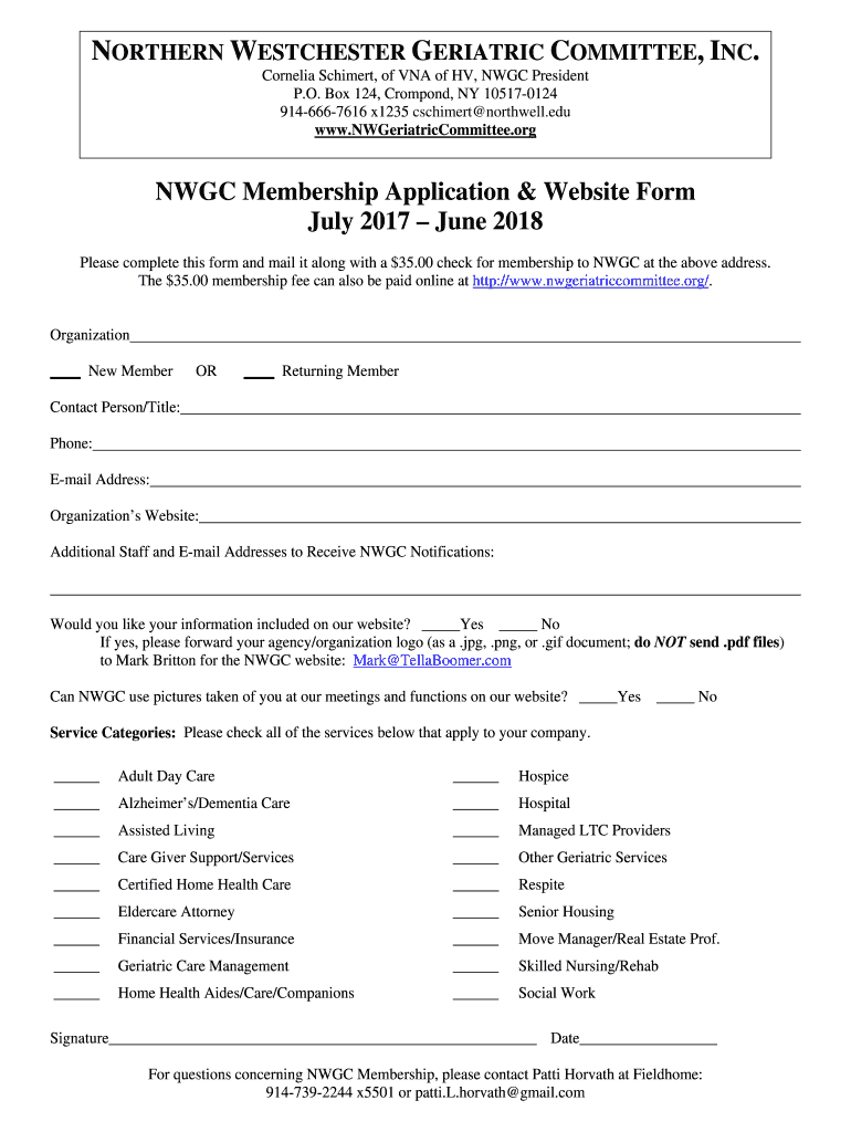 Get the free NORTHERN WESTCHESTER GERIATRIC COMMITTEE, INC