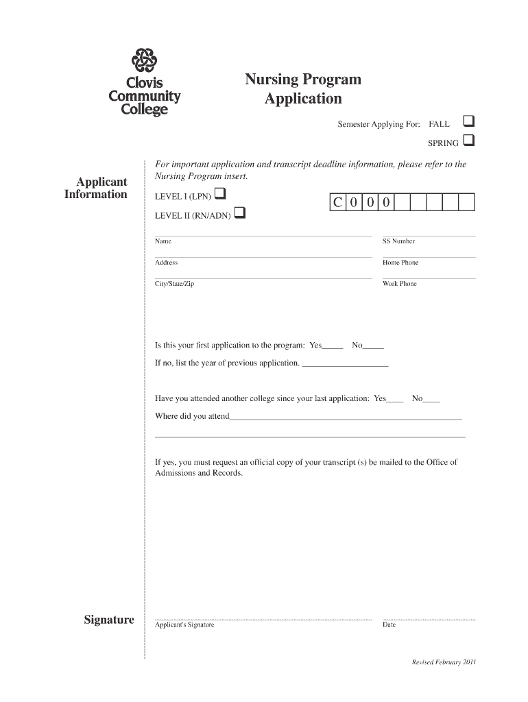 Get the free NURSING PROGRAM APPLICATION PROCESS Fall 2012 DEADLINE - clovis