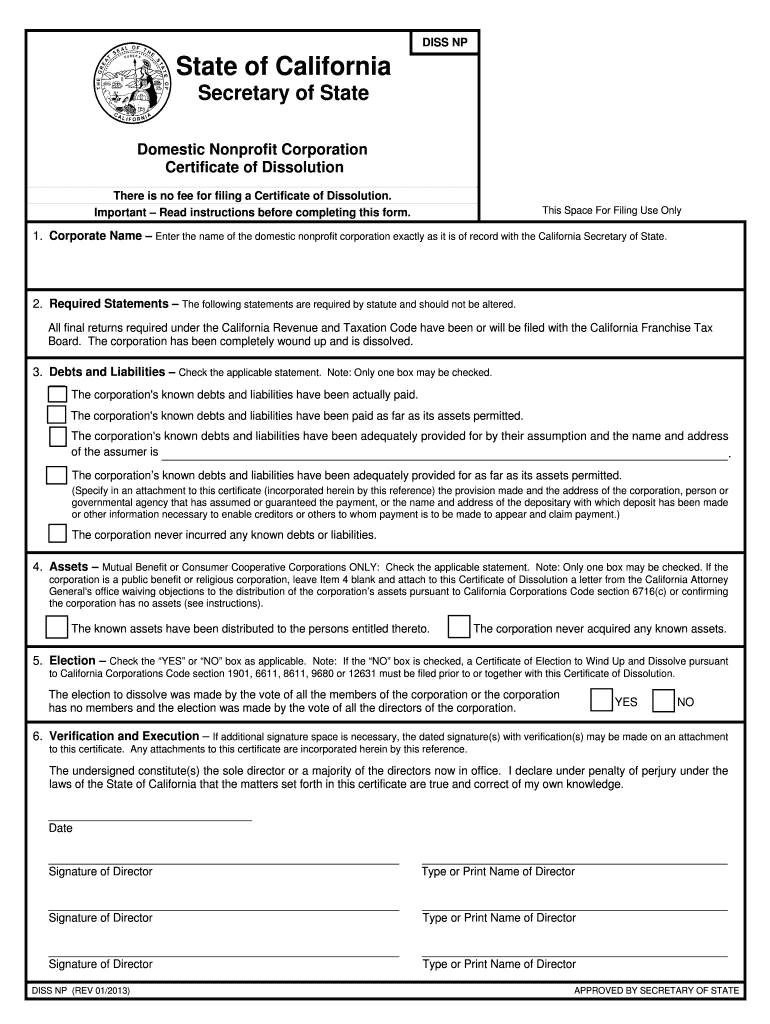 Get the free California Nonprofit Dissolution Certificate