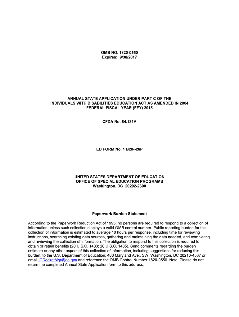 Expires: 9/30/2017ANNUAL STATE APPLICATION UNDER PART C OF THE