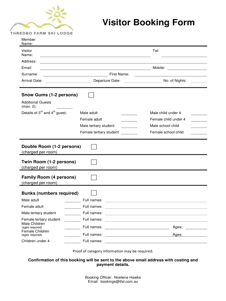 You will need the member's name, visitor's name, address, email, mobile number, arrival and departure dates, along with details about additional guests. Make sure to also select the preferred room type.