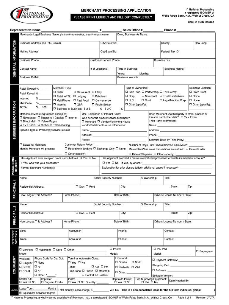 The Merchant Processing Application is a business form used by companies to apply for merchant services with Wells Fargo Bank.