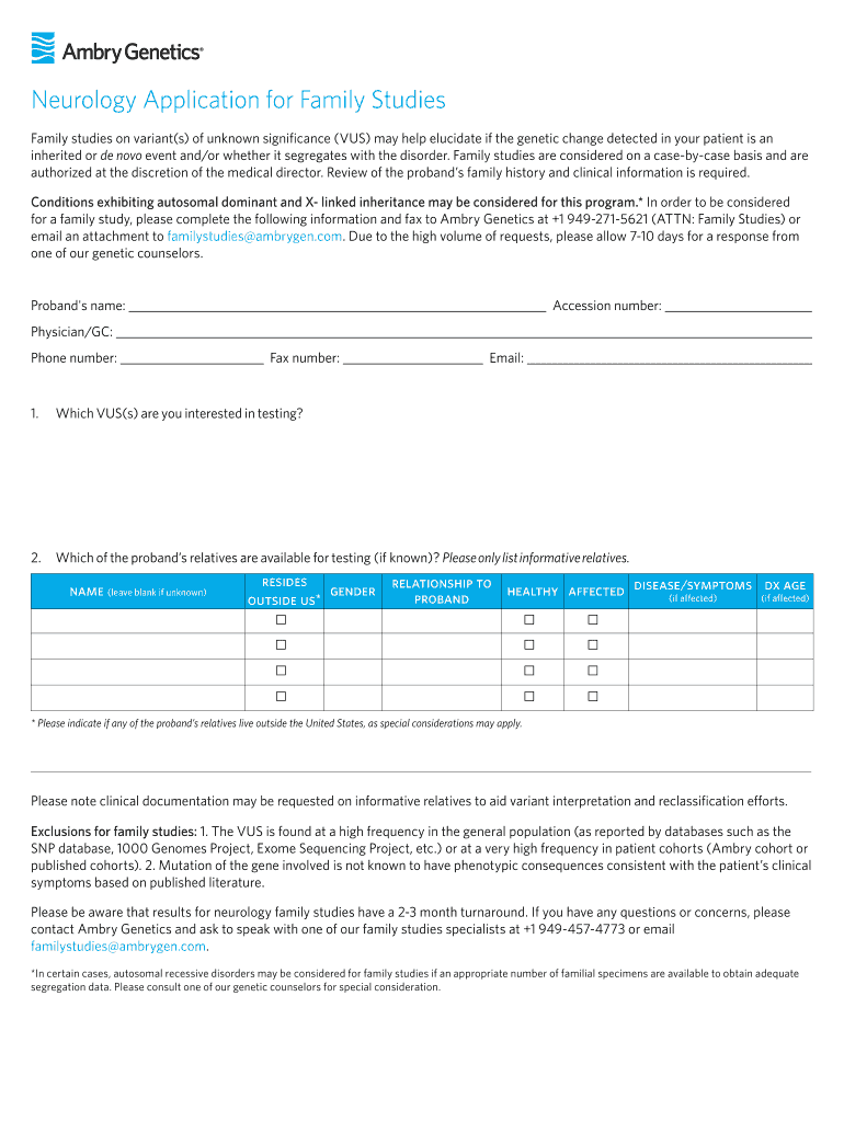 Get the free Neurology Application for Family Studies