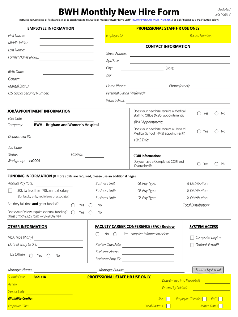 BWH Monthly New Hire Formulated 3/21/2018Instructions: Complete all fields and email as attachment to MS Outlook mailbox “BWH HR Pro Staff (BWHHRPROSTAFF PARTNERS.ORG) or click “Submit by Email