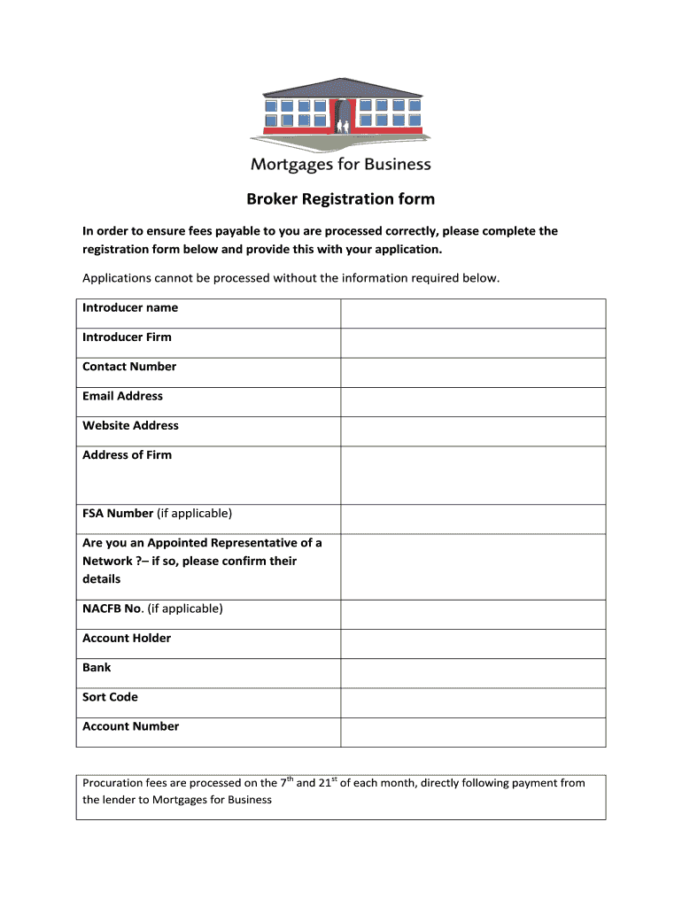 The Broker Registration Form is a critical document used to collect essential information from brokers during the mortgage brokering process. It serves a key role in the application processing by providing necessary details such as introducer information and firm addresses. The accuracy and completeness of the submitted data are vital for ensuring that processing fees are handled appropriately.
